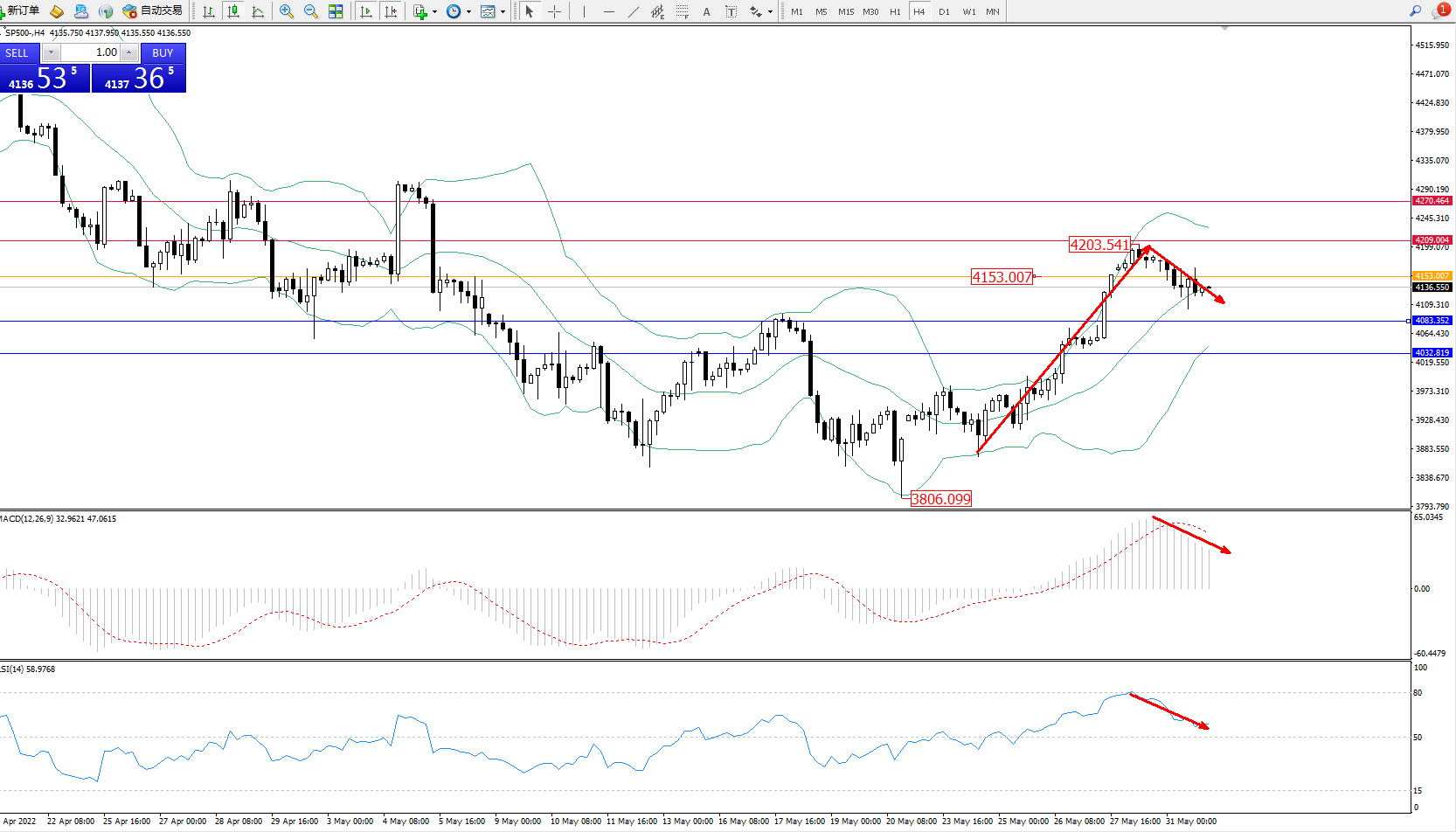 技术点评:多头动力延续布林带指标上轨附近持续震荡上扬,高位抵达4203附近节点后遇阻回撤,处于中轨附近节点后开始整理,短期会维持震荡向下移动迹象,布林带指标呈收口走势持续中,MACD指标处于多头区域维持震荡缓慢下移,RSI指标处于多头区域维持震荡下行中;