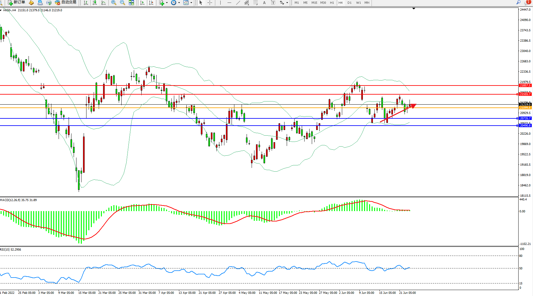 香港恒生指数6月23日(周四)收盘上涨265.53点,涨幅1.26%,报21273.87点;港股主要指数全天表现强势,热门板块普涨,整体情绪较好。大型科技股集体走高,阿里巴巴大涨6.4%,网易涨超2%,小米、腾讯、京东皆涨超1%;今日南下资金净流入34.41亿港元,大市成交额为1205亿港元。