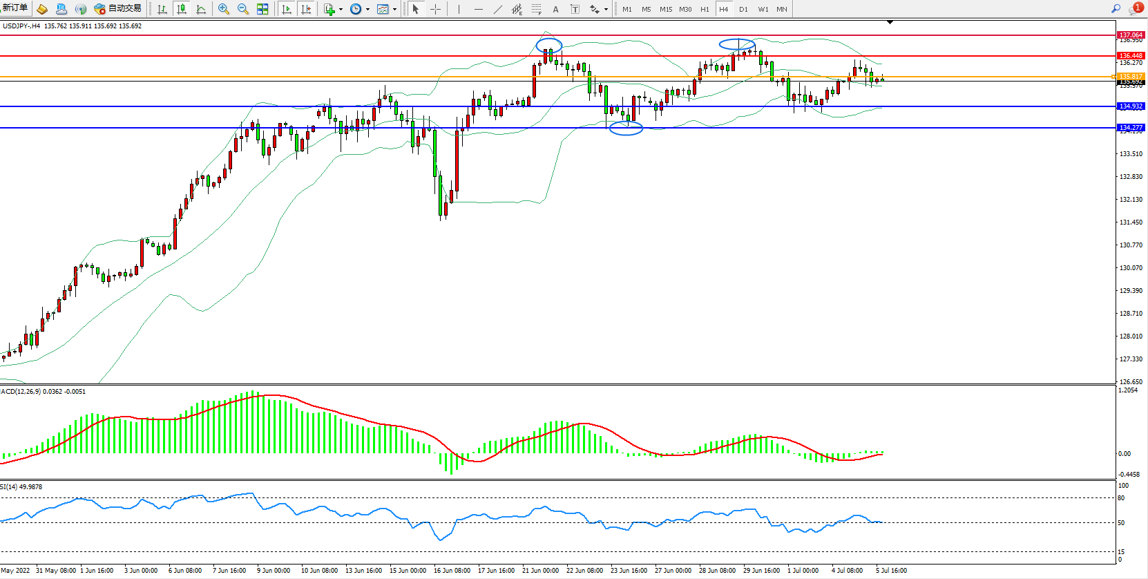 美元日圆USDJPY——4小时K线图显示: