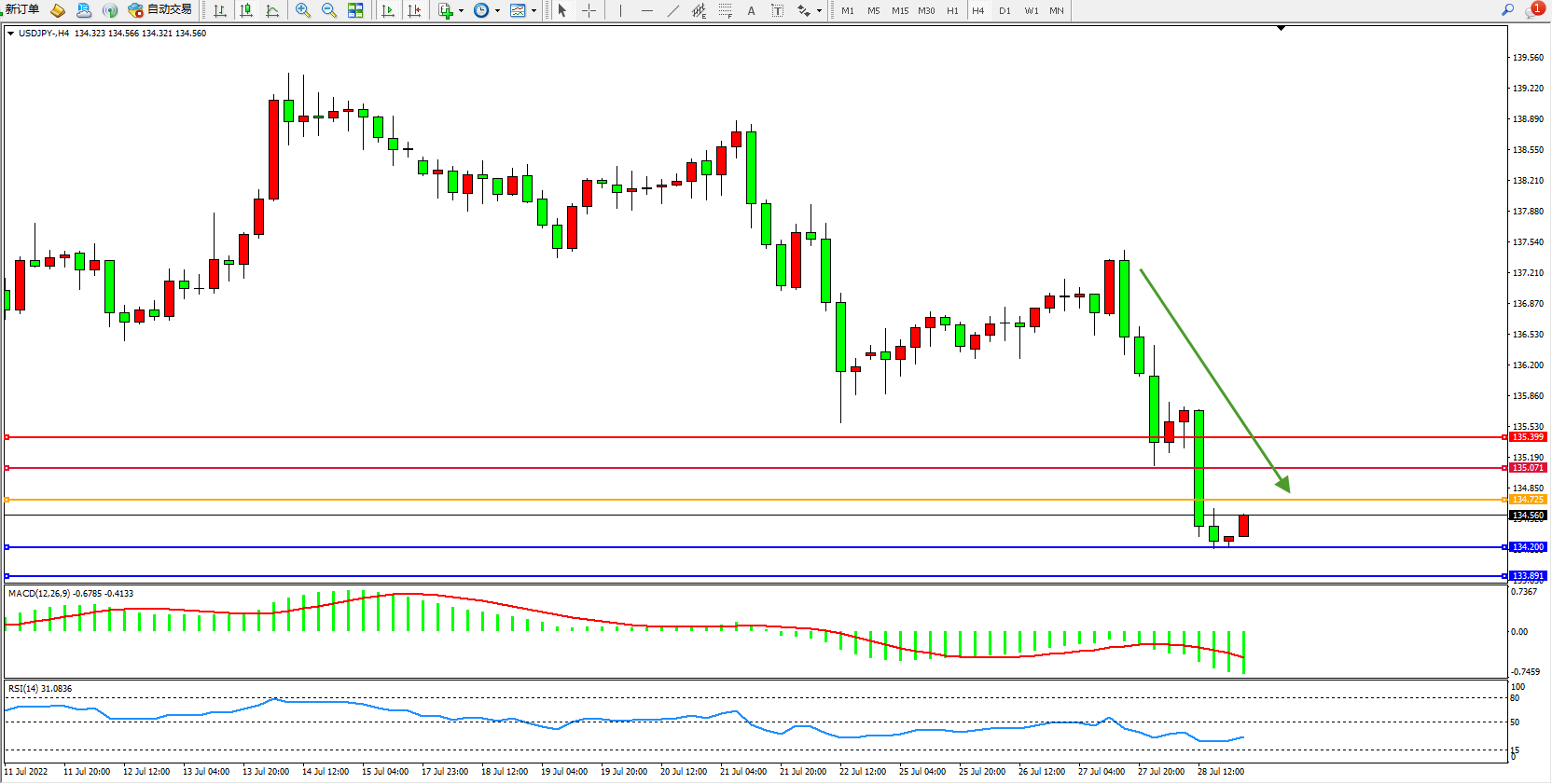 4小时图看:高位空头动力急速震荡下挫,短期处于低位弱势徘徊,空头下行态势良好,MACD指标处于空头区域维持低位整理,RSI指标处于空头区域低位弱势徘徊;
