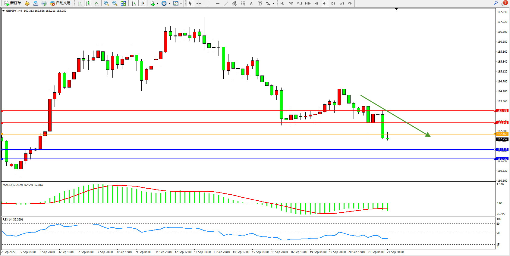 交易策略:162.463下方看跌,目标161.816、161.422