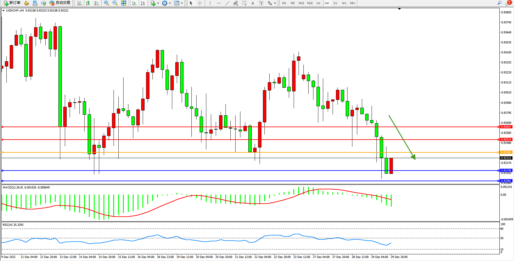 USDCHF:空头下挫 USDCHF  XAUUSD
