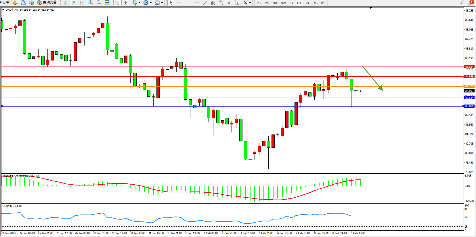 布油UKOil——4小时K线图显示:
