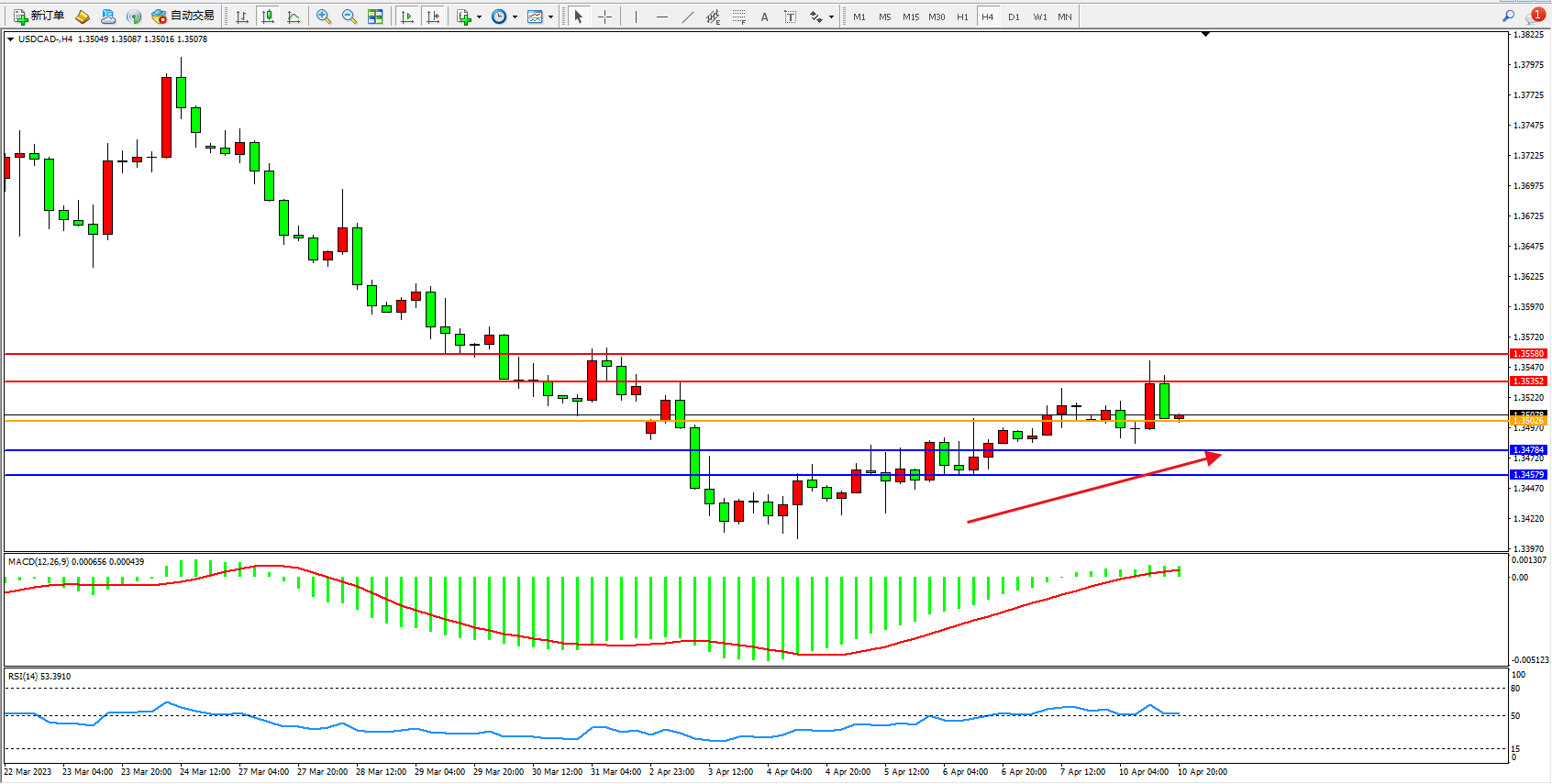 美元兑加元维持1.35078附近震荡,加拿大经济和劳动力市场的表现好于预期,但市场仍预计央行将降息逾50个基点,上月对美国和欧洲银行业压力的担忧加剧了这一预期。33位经济学家都表示,4月12日加拿大央行将维持隔夜拆借利率在4.50%。