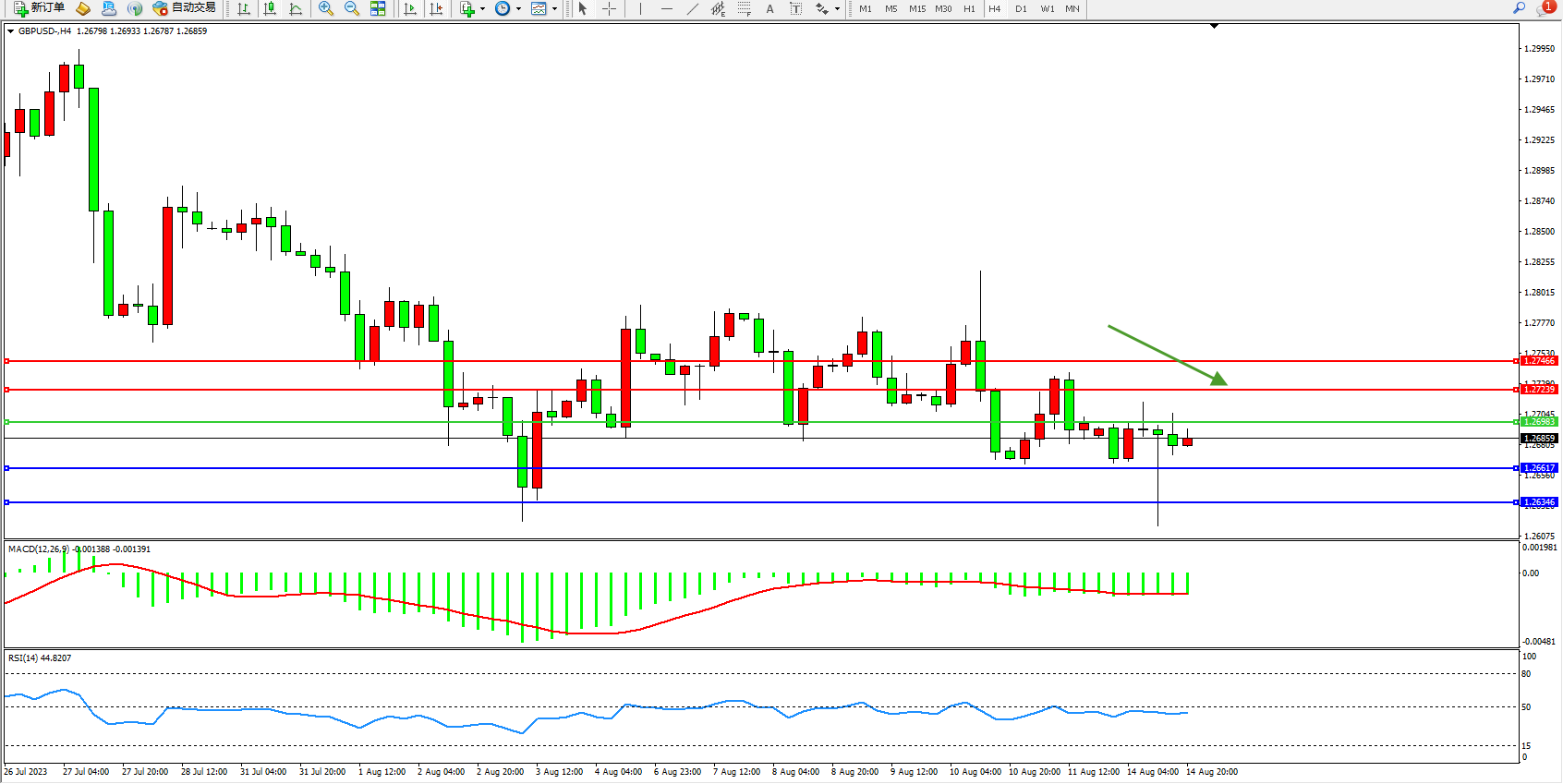 交易策略:1.26983下方看跌,目标1.26617 1.26346