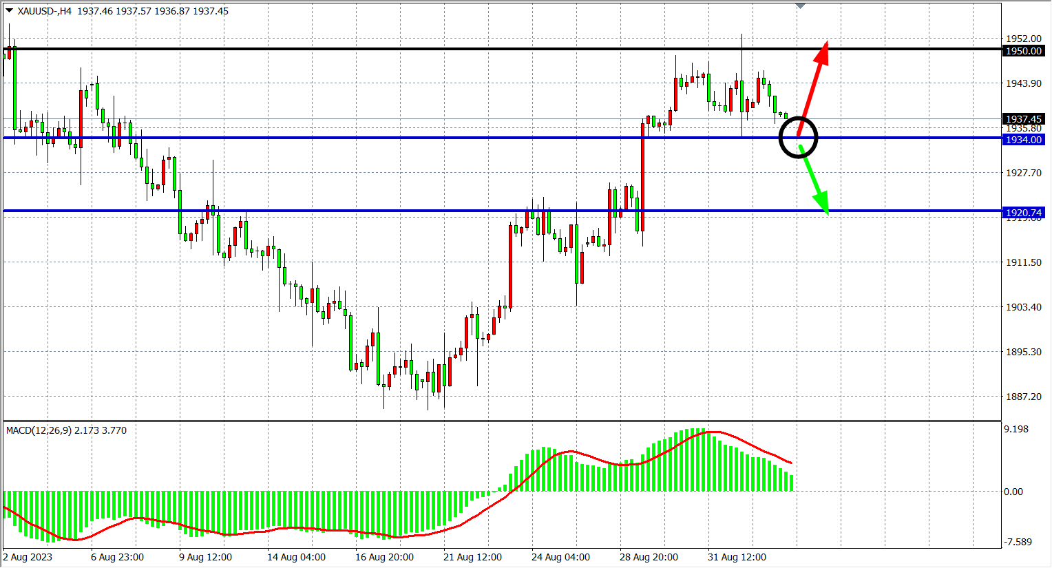 4小时图看,黄金在1935-1950间窄幅整理,行情延续震荡,支撑关注1935附近,阻力关注上1950-1960附近。
