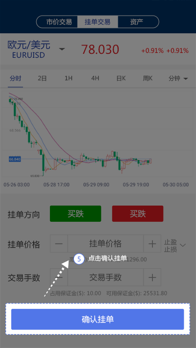 1.进入市价交易界面,输入或选择交易手数(最小可开仓0.01手,最大可开仓10手)