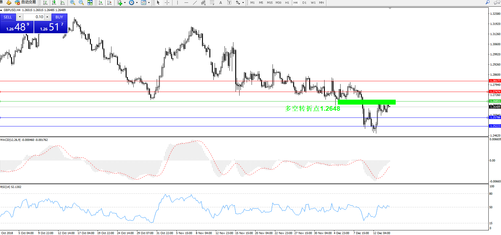 镑美GBPUSD——4小时K线图显示: