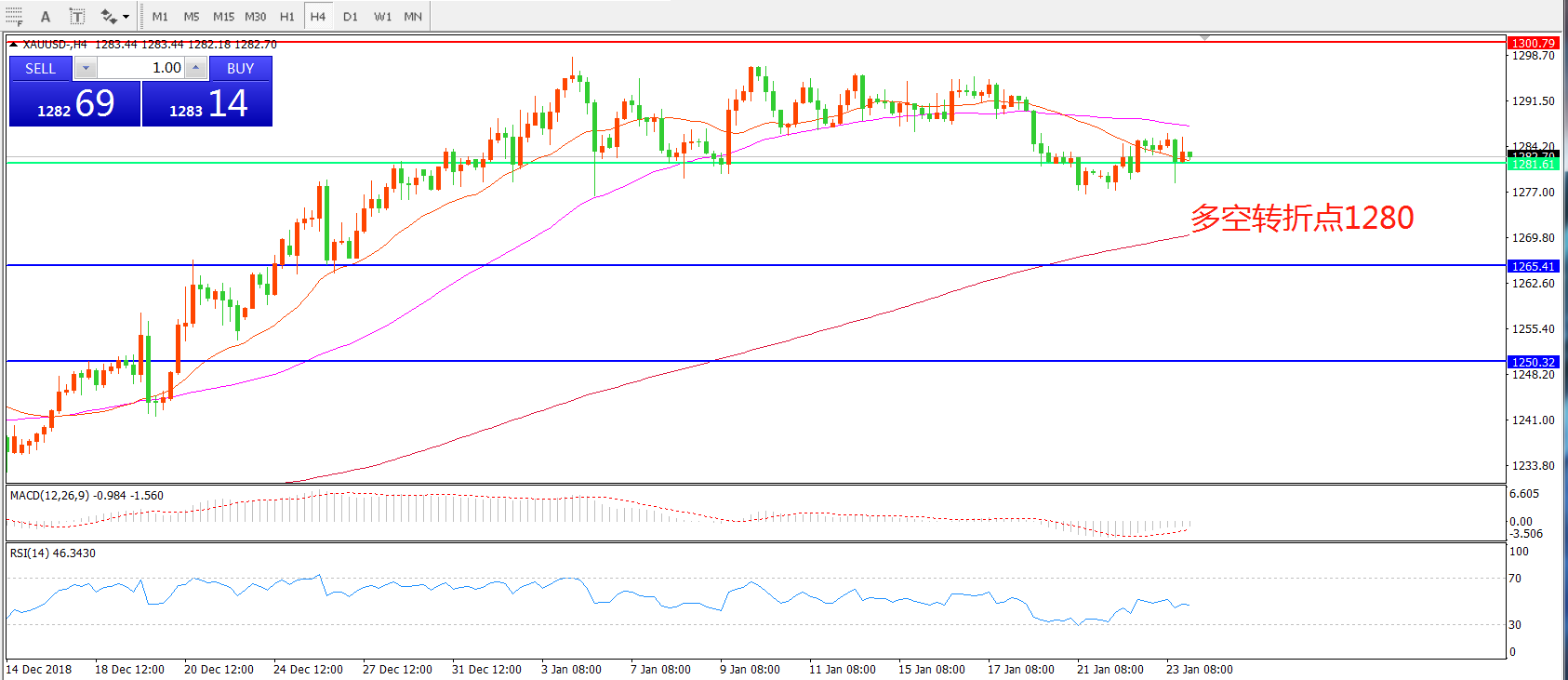 交易策略: 1280.00之下看跌,目标1265.00   1250.00