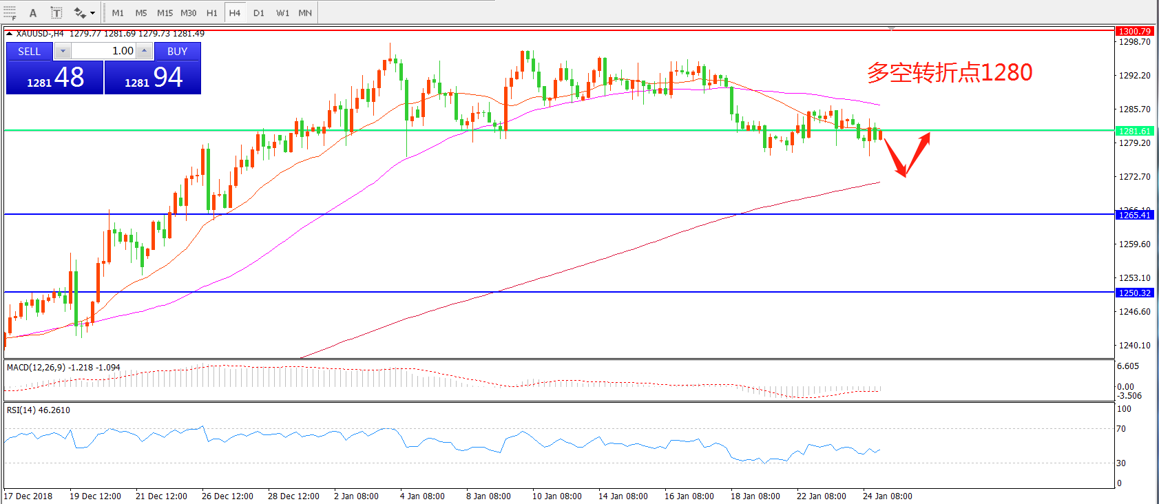 交易策略: 1280.00之下看跌,目标1265.00   1250.00
